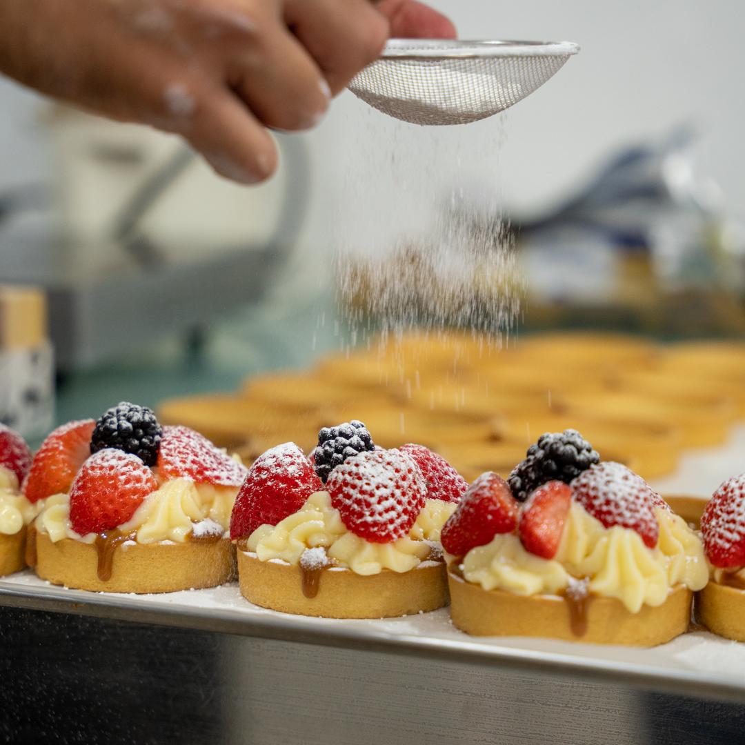 Preparamos tartaletas de fruta fresca y artesanales, con una base crujiente y un relleno cremoso que realza el sabor natural de las frutillas maduras. Un postre ligero y delicioso, ideal para acompañar tu café o para darte un dulce capricho en cualquier momento.